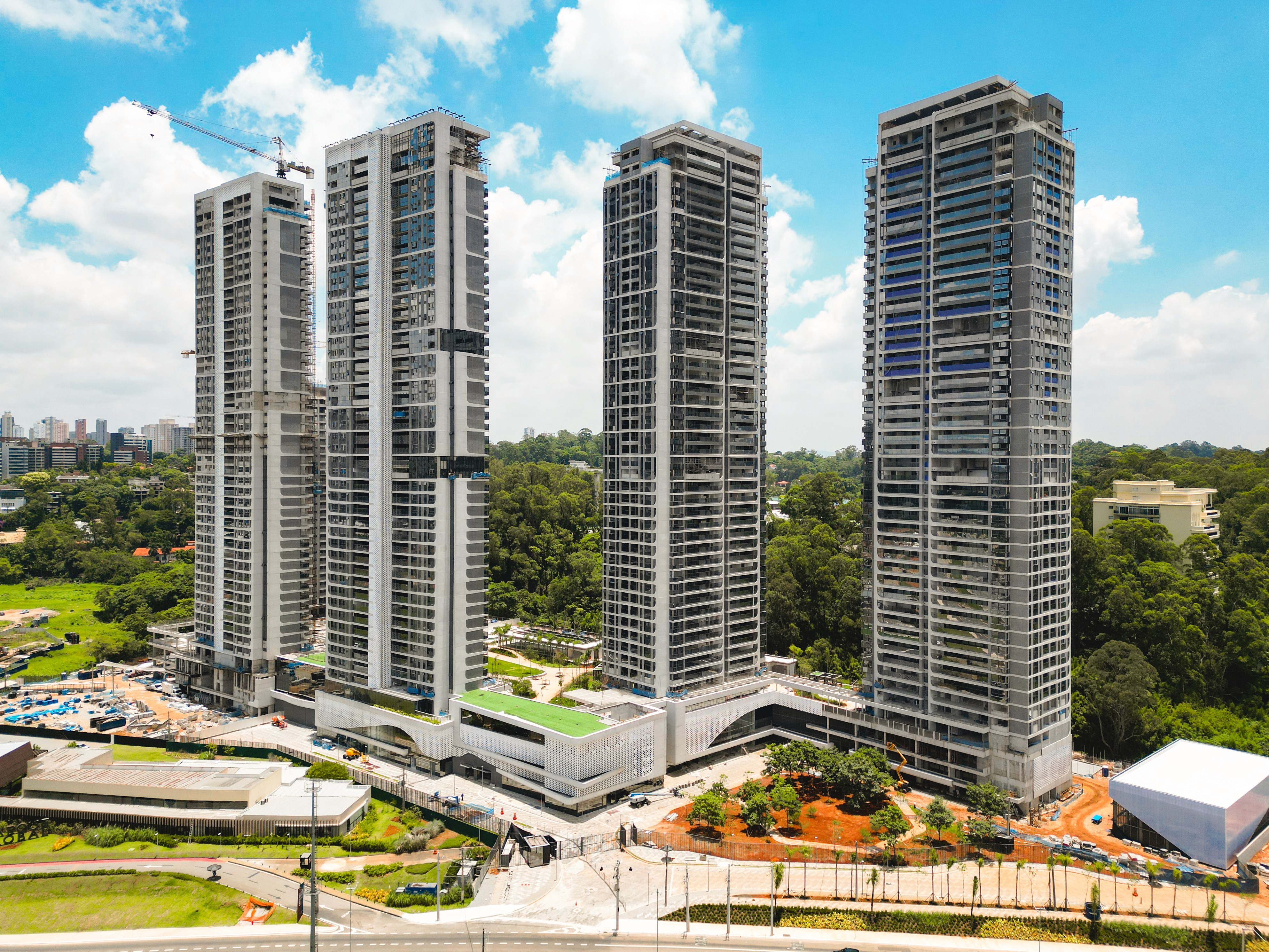 Um dos grandes diferenciais do empreendimento são as fachadas pré-moldadas, desenvolvidas a partir de tecnologias construtivas específicas para edifícios de grande altura, garantindo identidade arquitetônica, desempenho e viabilidade técnica.